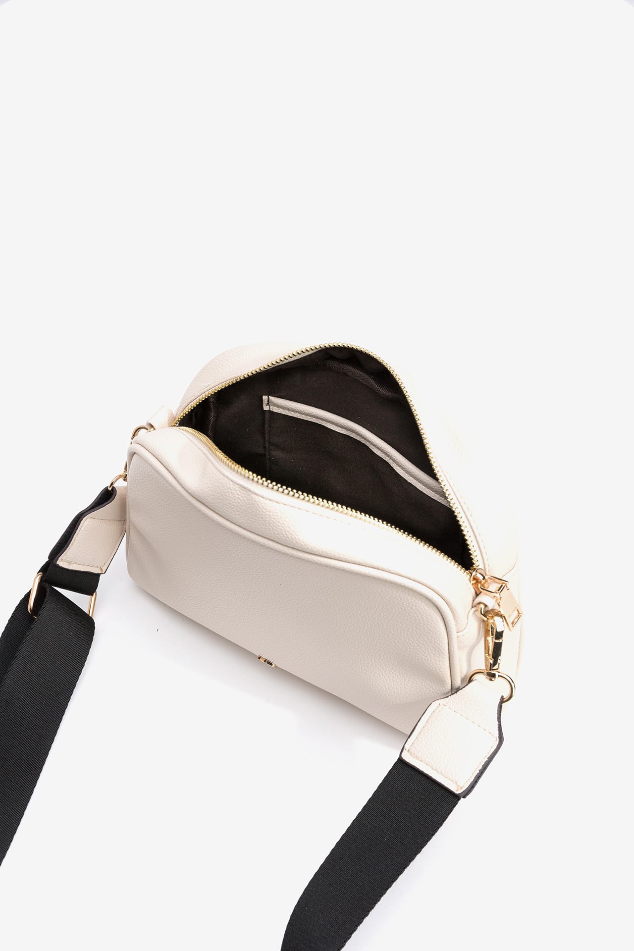 Bolso bandolera efecto piel con cierre de cremallera superior. Correa ajustable, removible y bolsillo interior. Tamaño Pequeño.