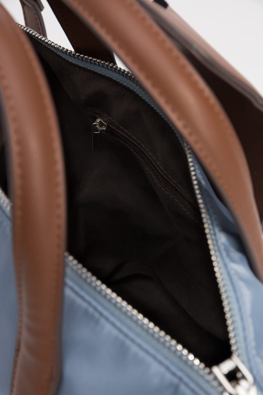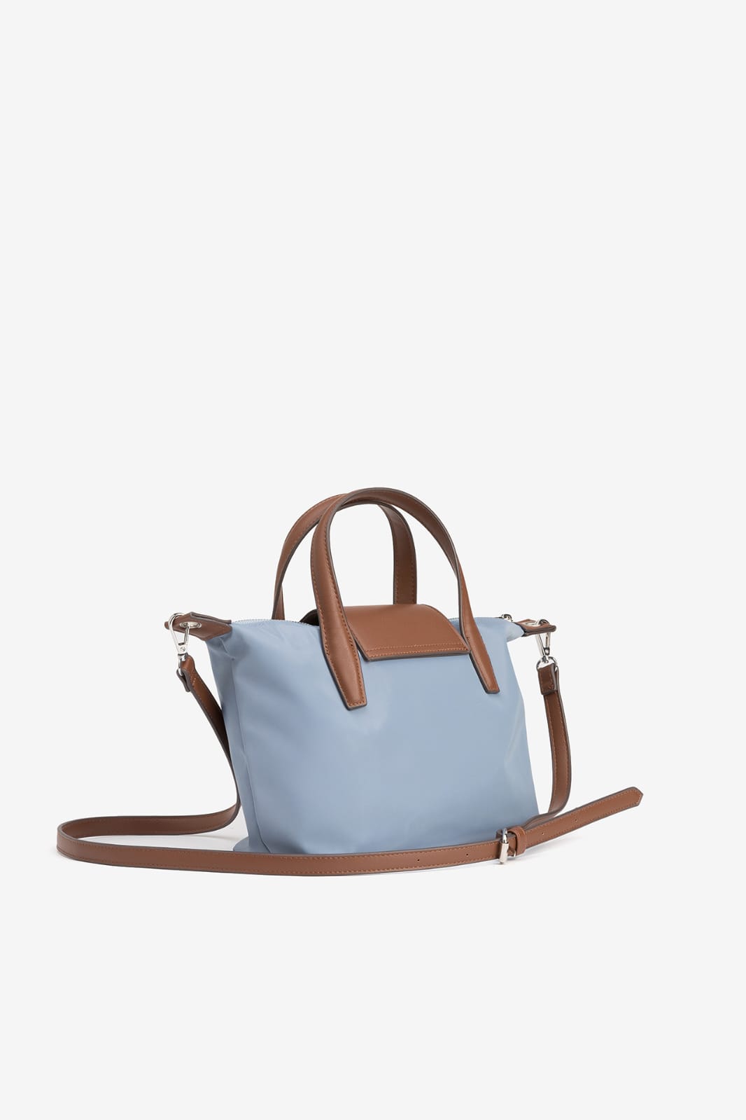 Bolso city de nailon combinado con efecto piel y colgante de corazón con cuerda con asa de mano fija y bandolera ajustable.
