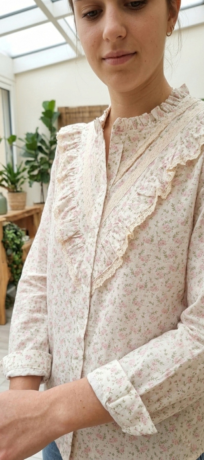 Eleva tu armario cotidiano con nuestra camisa romantic, una prenda que combina la delicadeza del estilo vintage con la frescura de un diseño moderno. Perfecta para quienes buscan un toque femenino, detallista y sofisticado.