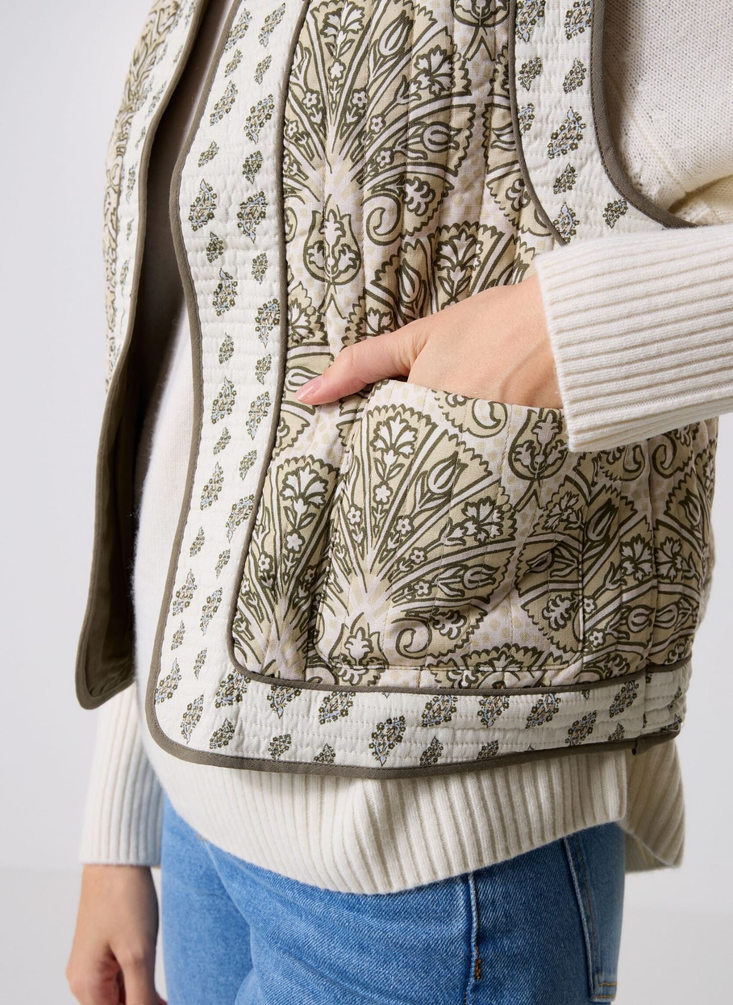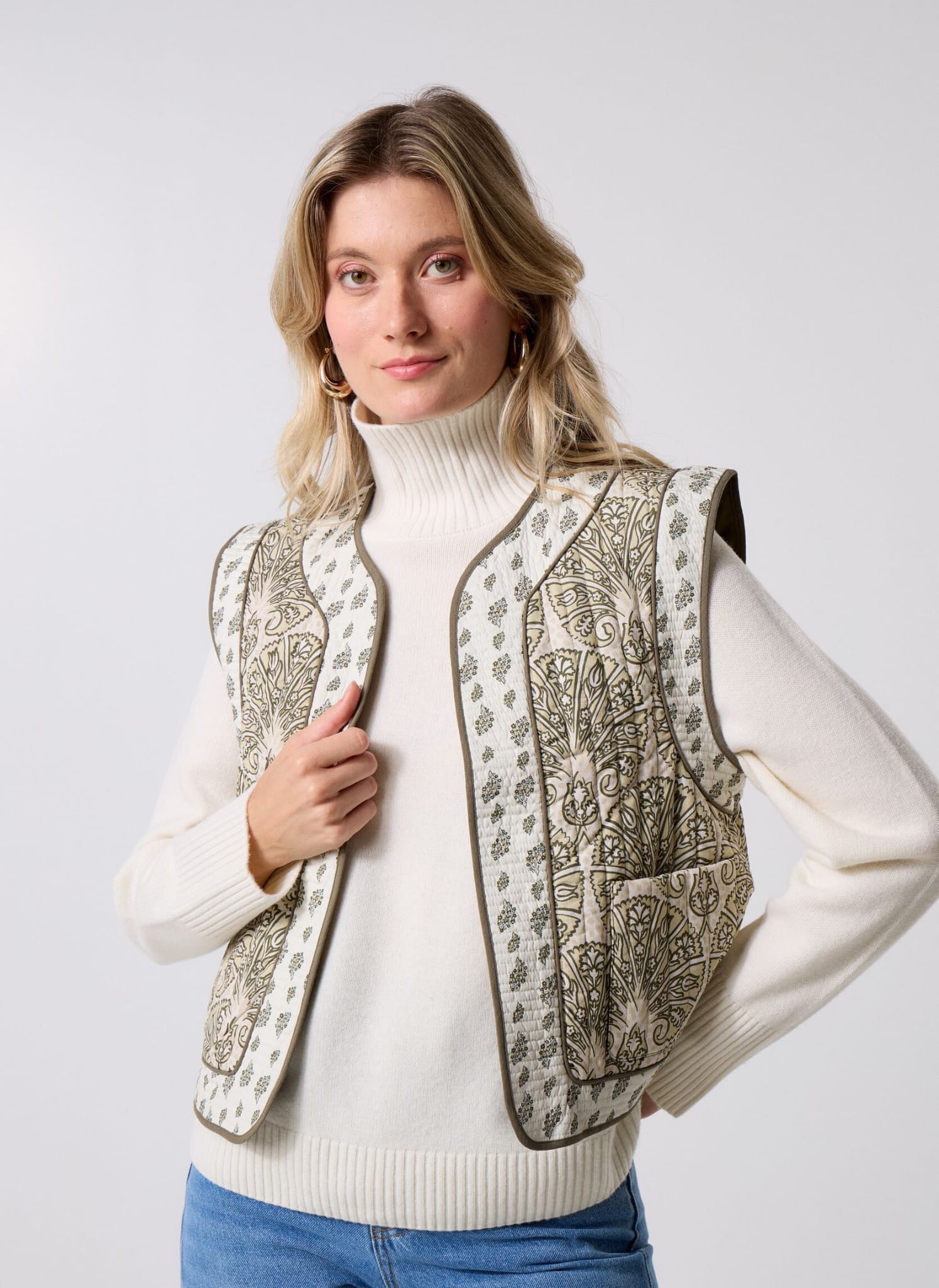 Chaleco acolchado estampado con bolsillos frontales.