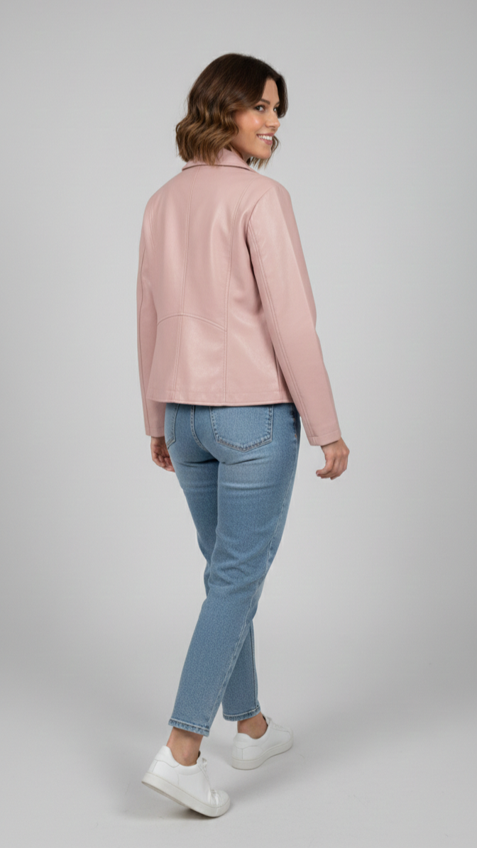 Añade un toque de color y tendencia a tus días con nuestra chaqueta de polipiel en rosa empolvado. Con un diseño inspirado en la clásica sobrecamisa, esta prenda es el híbrido perfecto entre una chaqueta ligera y un básico de moda, ideal para las temporadas de entretiempo.