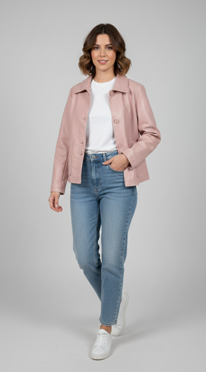 Color de Tendencia: El tono rosa pastel es extremadamente versátil, fácil de combinar tanto con neutros como con prendas denim.