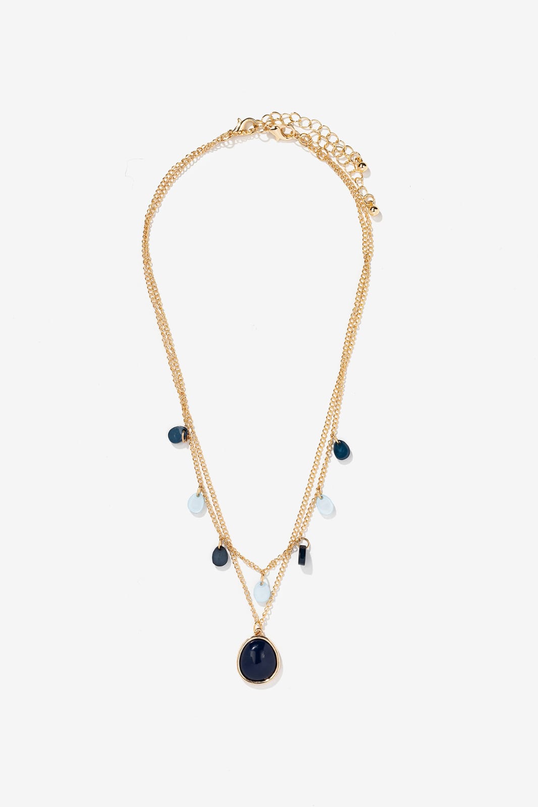 Pack de dos collares metálicos con colgantes acrílicos en color azul. Cierres regulables.
