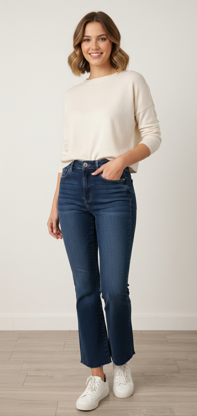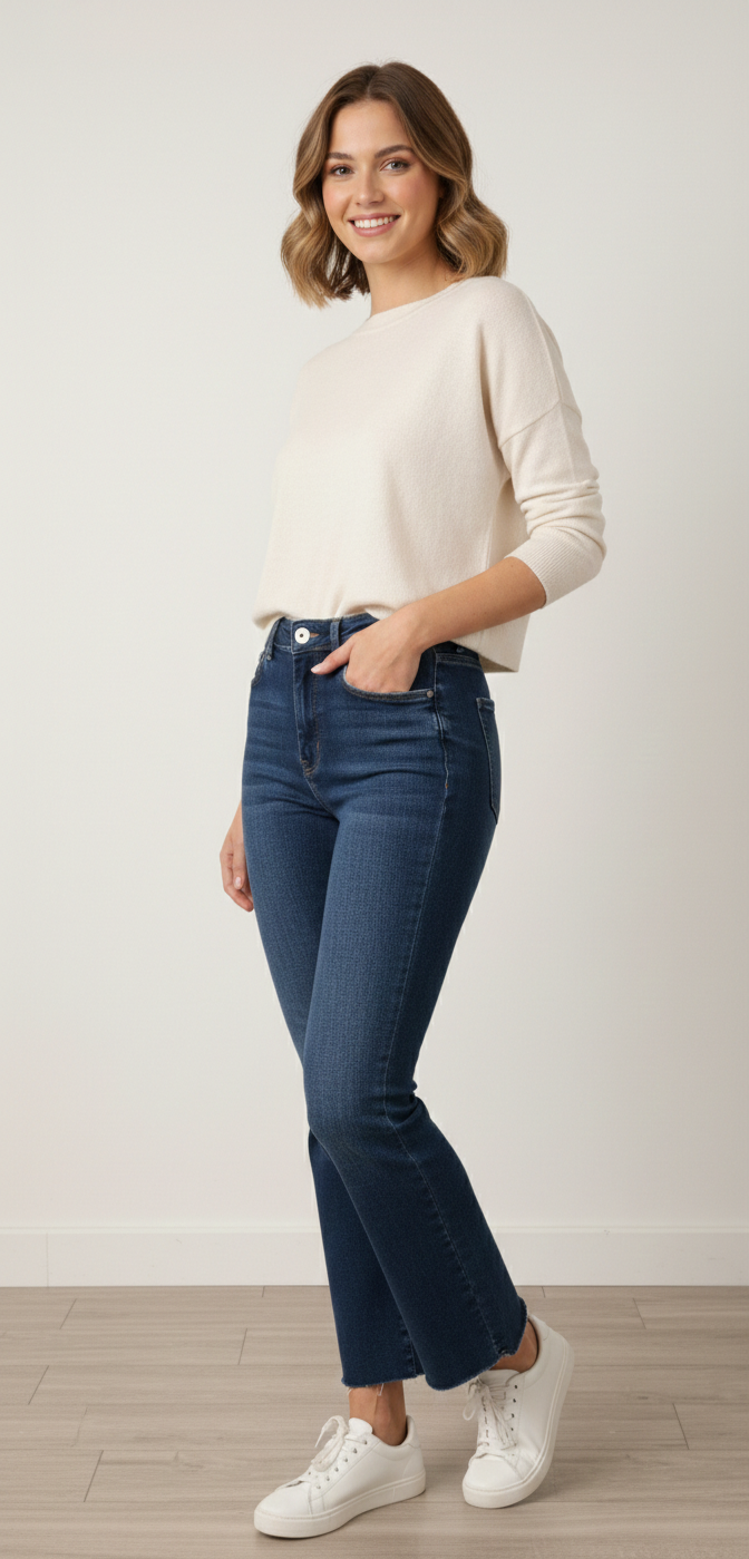 • Corte Flare (Campana): Un diseño atemporal que aporta equilibrio y elegancia a cualquier look.