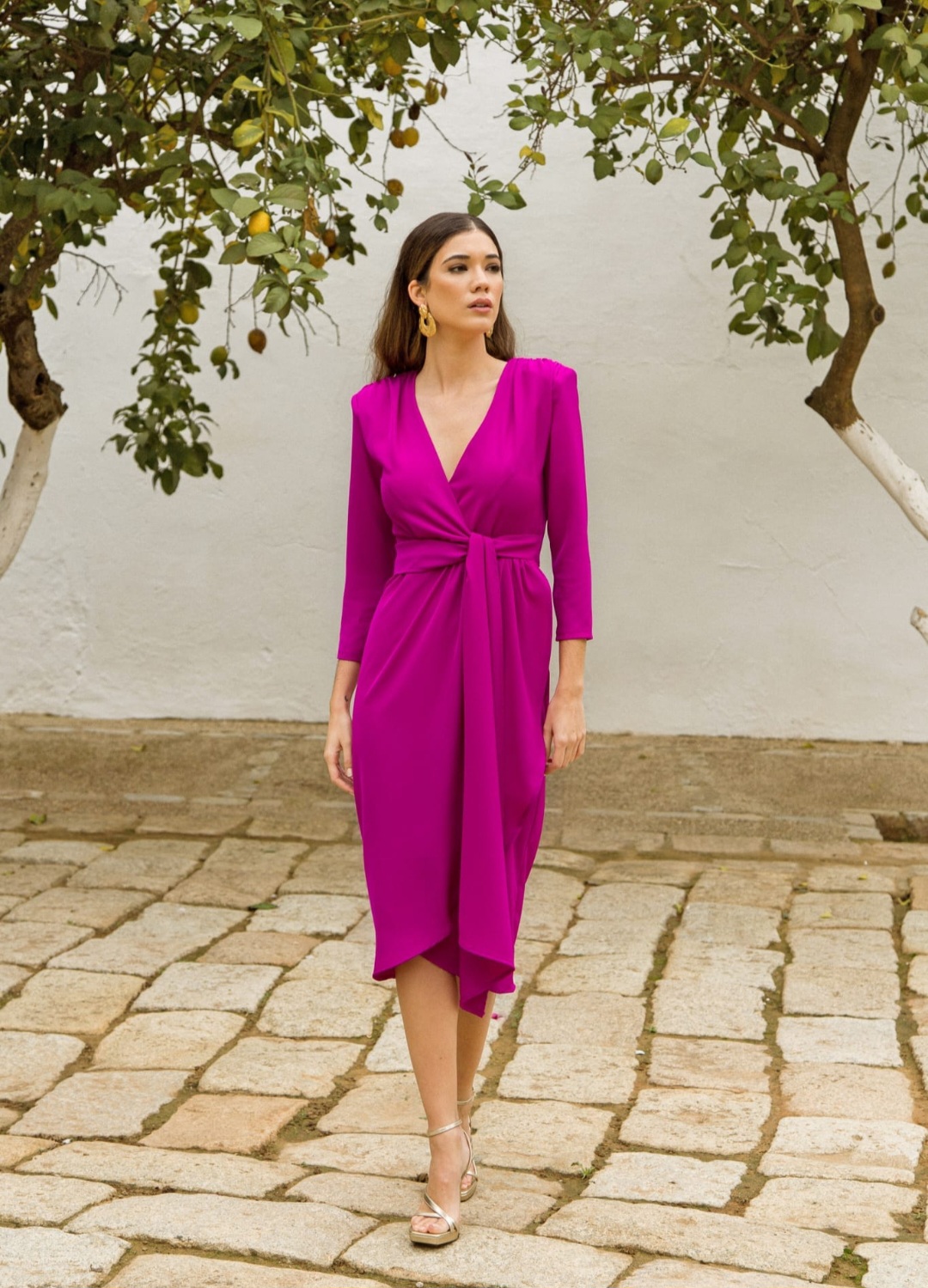 El Vestido Amalfi es la elección definitiva para quienes buscan un look de invitada que combine la elegancia clásica con un diseño dinámico. Su tono púrpura intenso no solo desprende energía, sino que aporta una luz increíble al rostro, convirtiéndolo en una pieza estrella para cualquier evento de temporada.