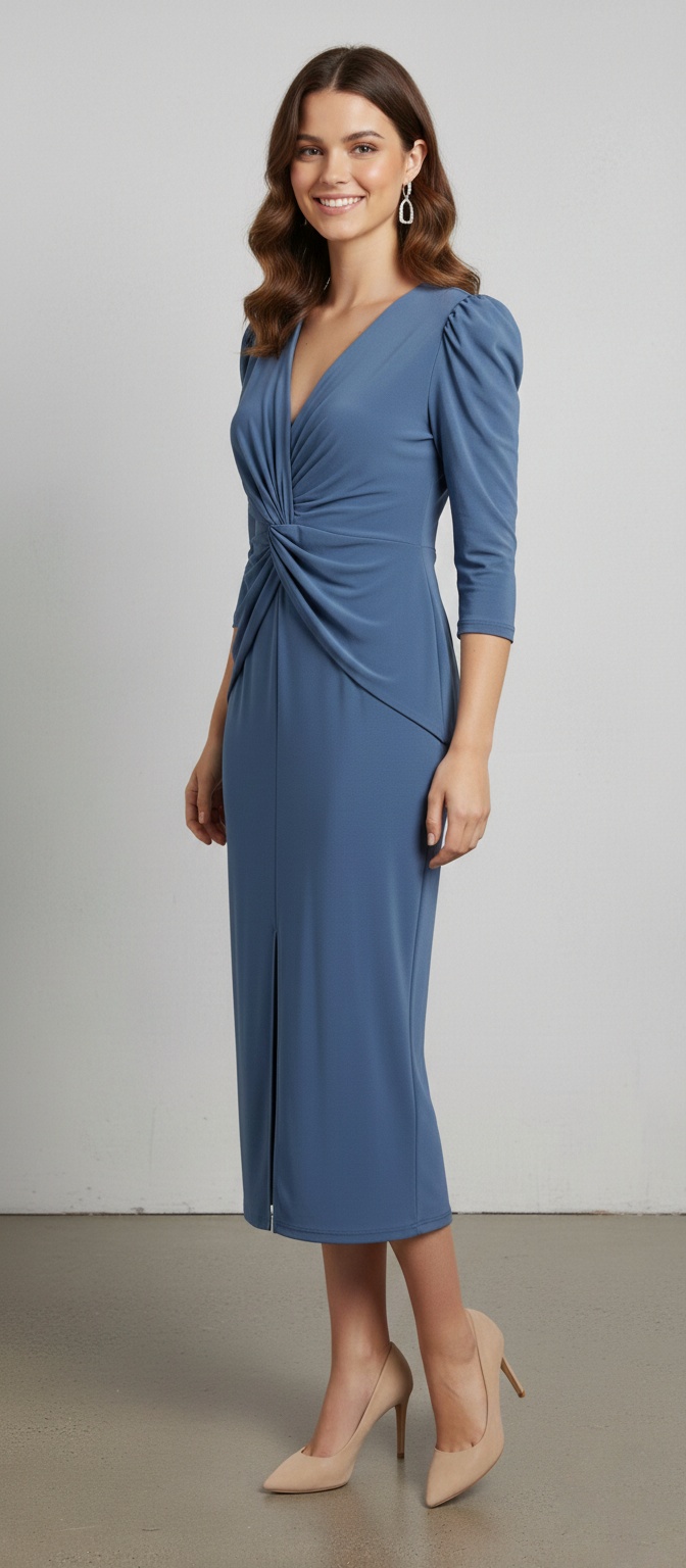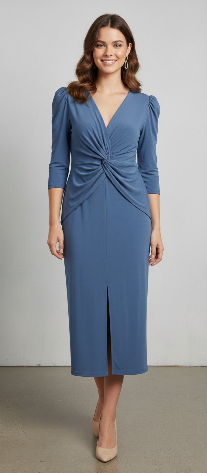 Este vestido tiene un diseño muy favorecedor y elegante, ideal para eventos de día como bautizos o comuniones, cenas especiales o incluso para un look de oficina muy sofisticado.